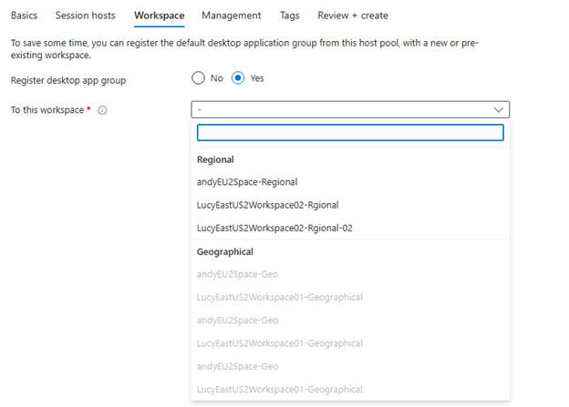 Historiquement, lorsque vous déployiez un Host Pool AVD, vous deviez sélectionner une géographie pour le stockage des métadonnées (par exemple, « États-Unis », « Europe », « Japon »). Ces métadonnées incluent les configurations des Host Pools, des App Groups et des Workspaces, ainsi que les attributions d’utilisateurs.
